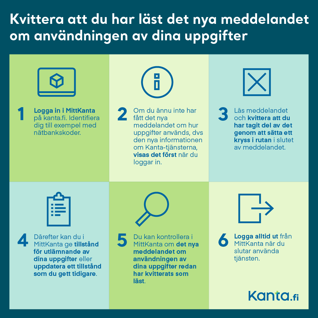 - Infograf över informationen om Kanta-tjänsterna, för meddelanden (png)(öppnas i ett nytt fönster)